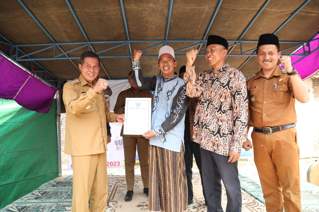 Saat peresmian drainase Kaliwadas, Walikota Serang Syafrudin menyempatkan diri melihat langsung hasil pengecoran drainase yang dilakukan warga Kaliwadas tersebut.