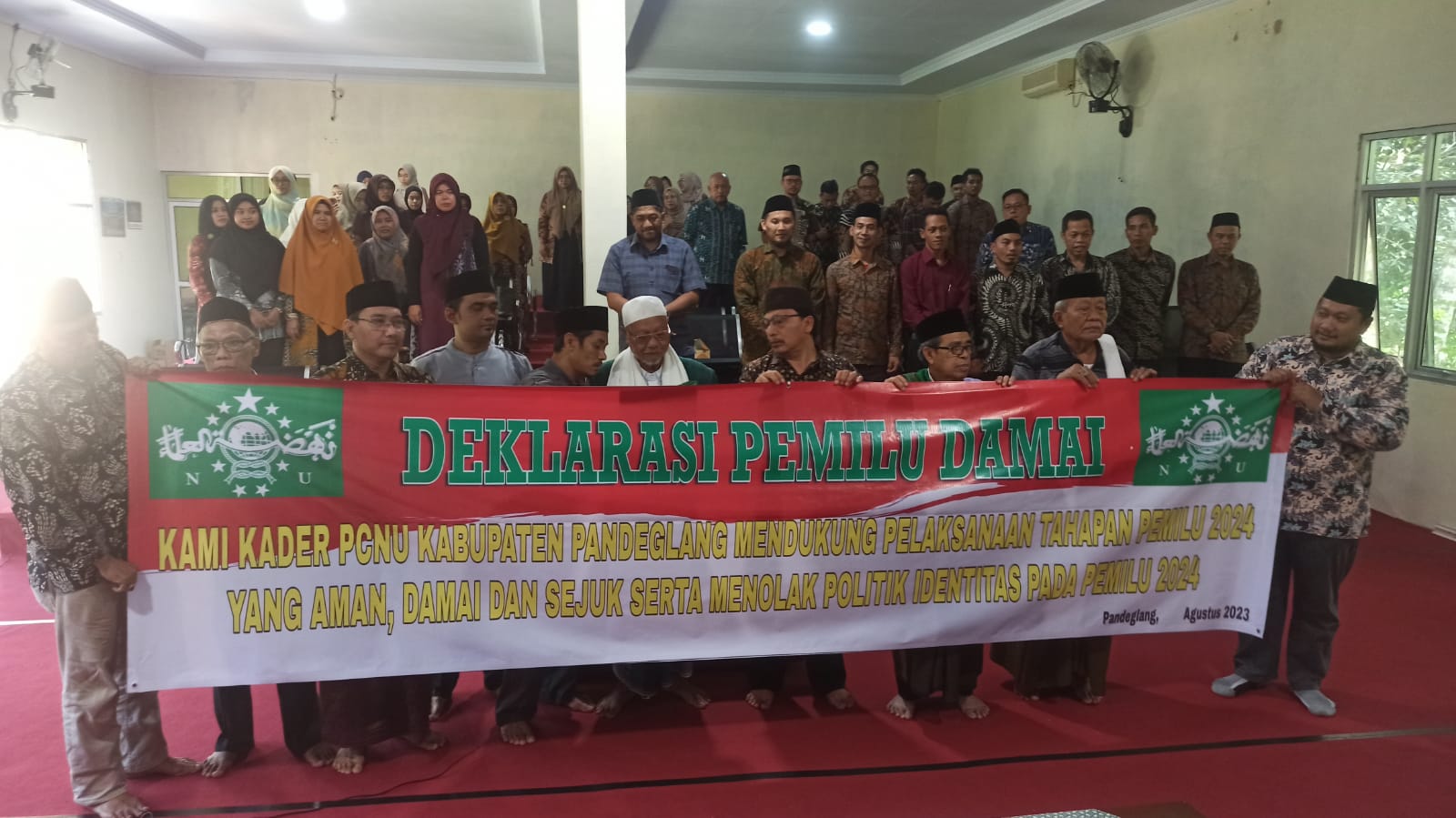 BagusNews.Co – Pengurus Cabang Nahdatul Ulama (PCNU) Kabupaten Pandeglang, mendeklarasikan pemilu 2024 bebas dari politik identitas, di Komplek Yayasan Pendidikan Islam Babunnajah, Kabupaten Pandeglang, Kamis (10/08/2023).