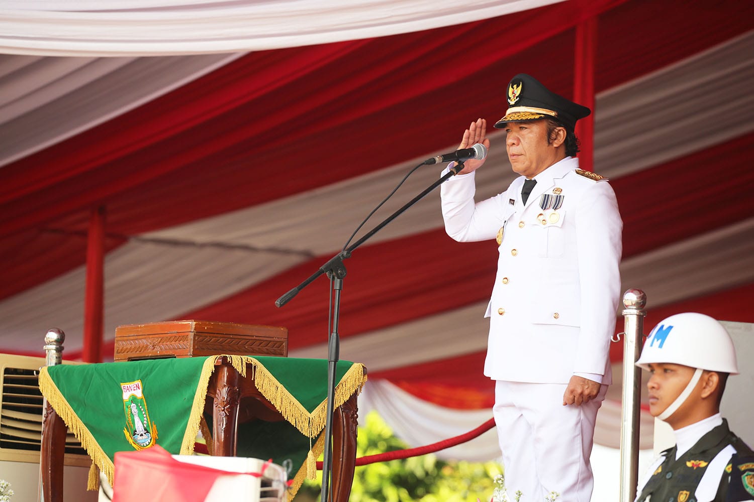 “78 tahun lalu dan tadi kita dengungkan kembali Proklamasi Kemerdekaan Republik Indonesia. Atas nama Bangsa Indonesia, Soekarno Hatta menggemakan Proklamasi. Hal mendasar bagi Bangsa Indonesia. Itu kita dapatkan dengan perjuangan, darah, dan air mata,” kata Al Muktabar saat memimpin upacara.