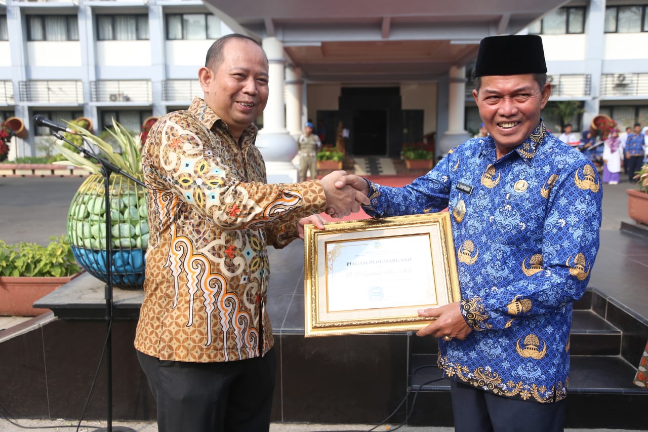 Penyerahan penghargaan itu diberikan oleh Kepala Kantor Bahasa Provinsi Banten Asep juanda, pada acara apel pagi di Lapangan Upacara Puspemkot Serang, Senin, 18 September 2023.