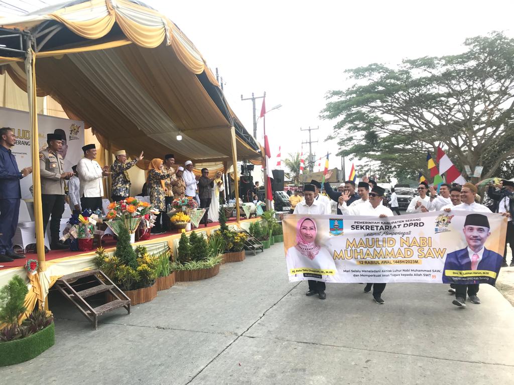 BagusNews.Co – Pemkab Serang menggelar pawai perayaan Maulid Nabi Muhammad SAW tahun 1445 Hijriah di Kecamatan Tanara, pada Selasa, 3 Oktober 2023.
