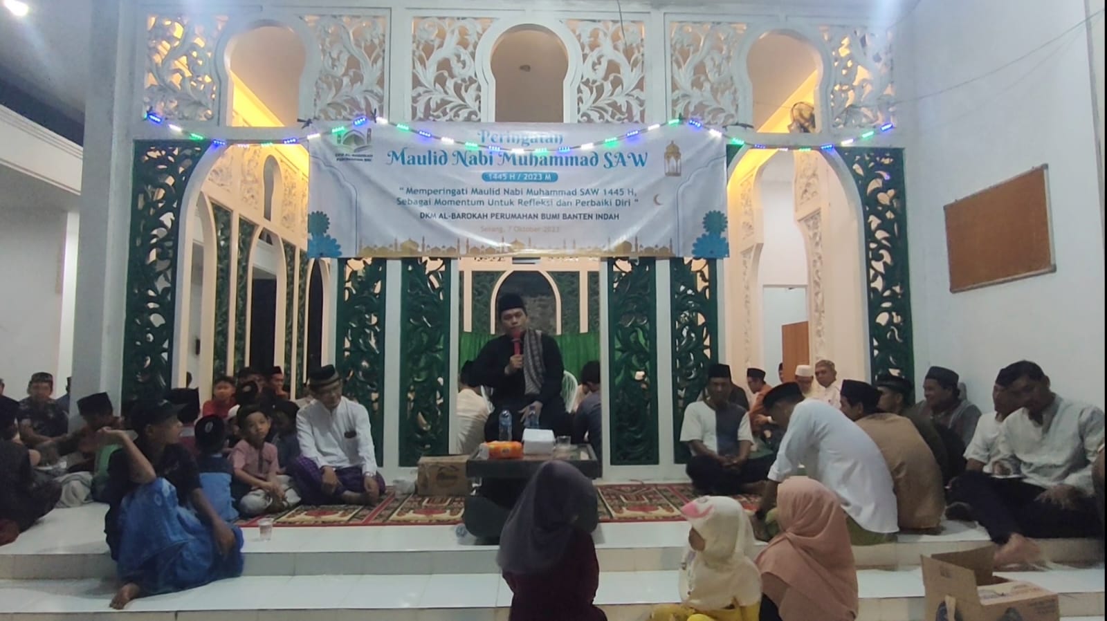 BagusNews.Co – Warga masyarakat di Lingkungan Perumahan Bumi Banten Indah, Sepang, Kota Serang, Banten menggelar Peringatan Hari Besar Islam, Maulid Nabi Muhammad SAW 1445 hijriyah. Acara ini digelar di Mushola Al Barokah.
