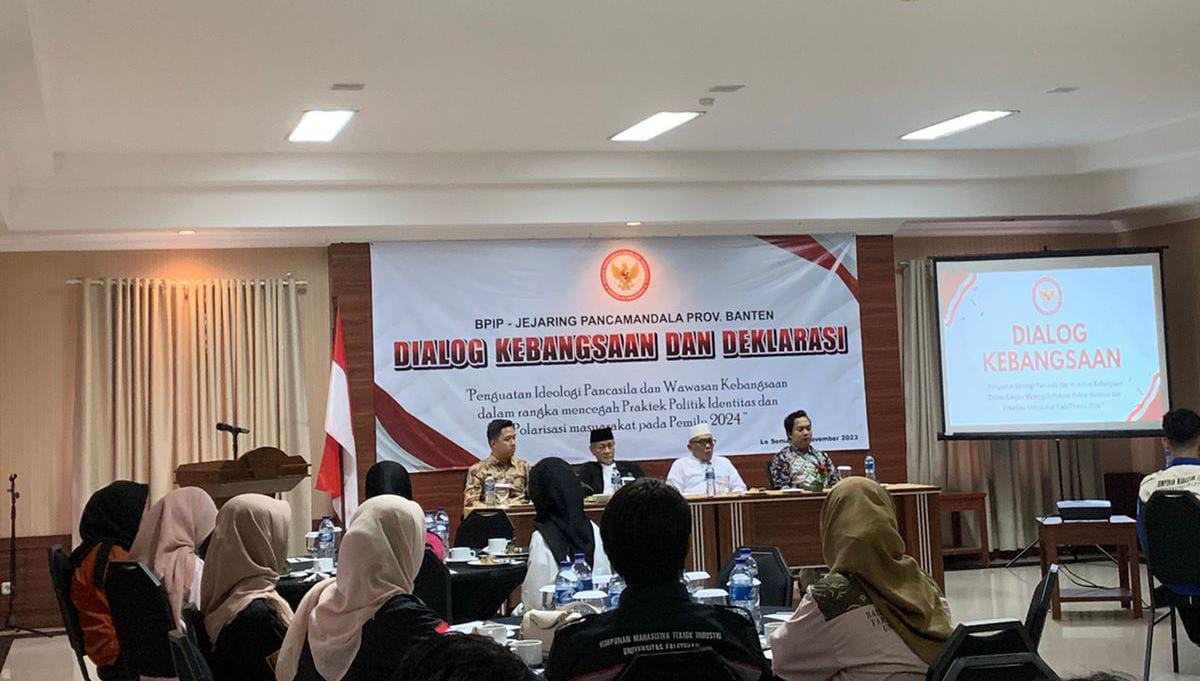 BagusNews.Co – Badan Pembinaan Ideologi Pancasila (BPIP) melalui Jejaring Pancamandala Provinsi Banten menggelar dialog kebangsaan untuk membumikan Pancasila sekaligus menggelar Deklarasi Pemilu Damai bersama ulama dan Pemuda Banten di Kota Serang.