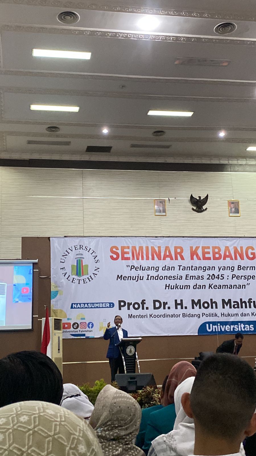 Sementara, pada kesepatan tersebut Menko Polhukam Mahfud Md menyampaikan dalam rangka menyongsong Indonesia Emas 2045, dibutuhkannya beberapa hal. Mulai dari ideologi bangsa yang kokoh, ekonomi berjalan dengan baik, hukum dan keadilan ditegakkan, politik yang demokratis, budaya gotong-royong, serta mengedepankan persaudaraan.