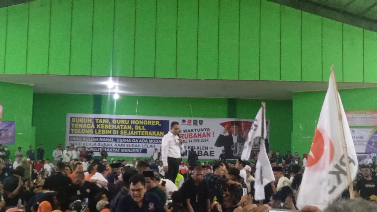 BagusNews.Co – Calon Presiden (Capres) nomor urut satu Anies Baswedan temui simpatisan di GOR Stadion Maulana Yusuf, Kota Serang, setelah dirinya menghadiri uji gagasan Capres di Universitas Bina Bangsa (UNIBA), Kamis, 21 Desember 2023.
