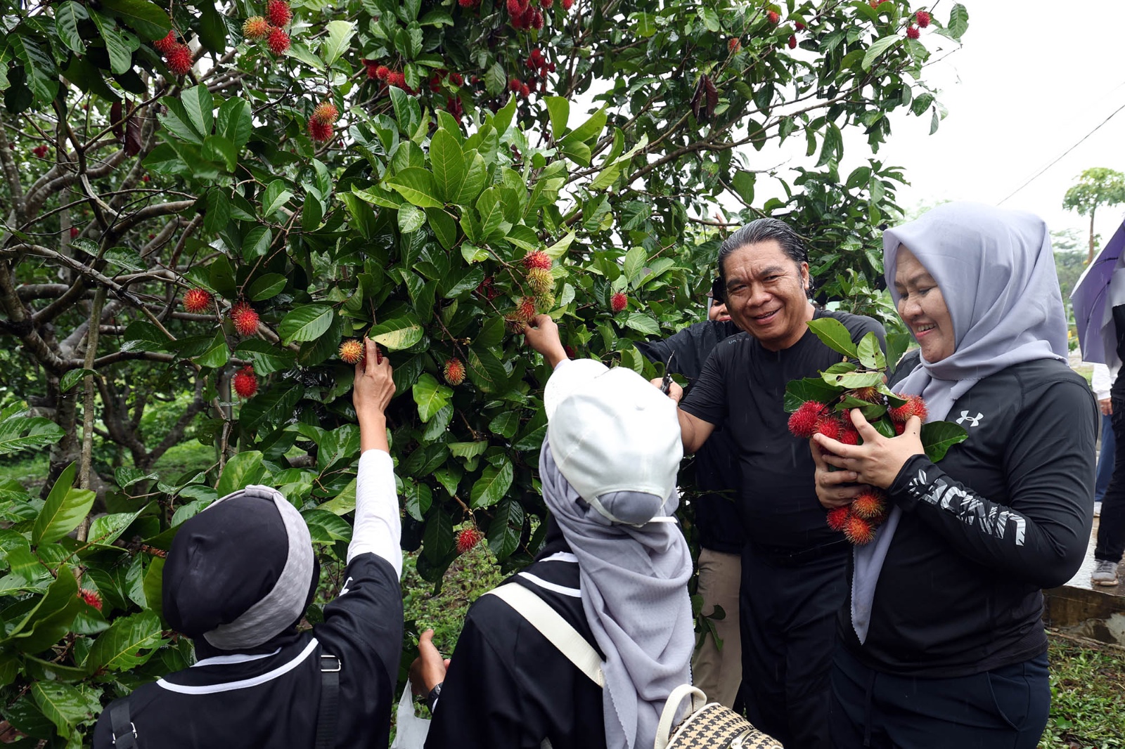 BagusNews.Co – Penjabat (Pj) Gubernur Banten Al Muktabar bersama Tim Penggerak Pemberdayaan dan Kesejahteraan Keluarga (TP PKK) Provinsi Banten panen bawang merah dan rambutan serta melaksanakan penanaman cabai di Kawasan Sistem Pertanian Terpadu (Sitandu) Provinsi Banten, Jumat 19 Januari 2024.