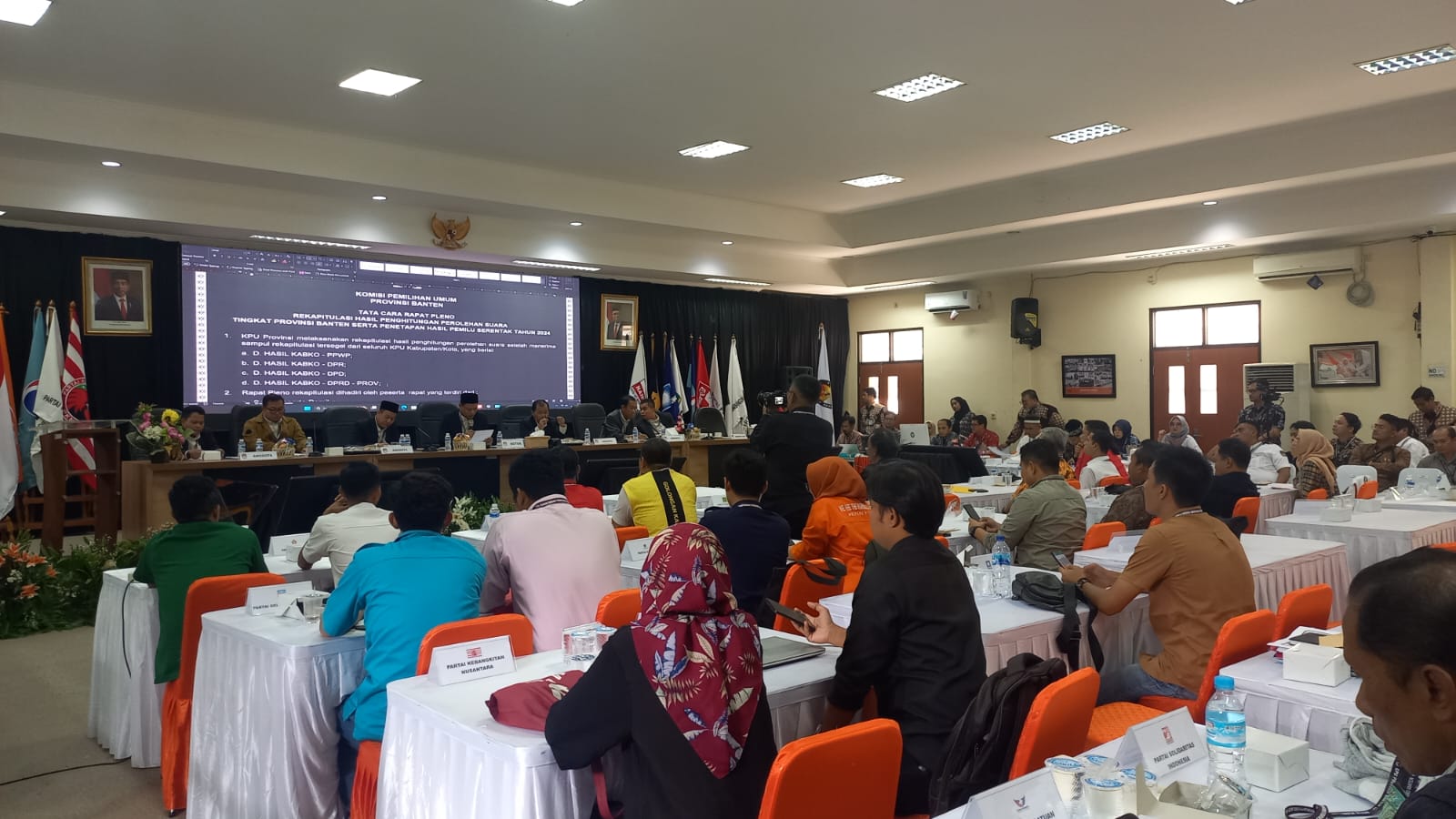 BagusNews.Co – Komisi Pemilihan Umum (KPU) Provinsi Banten menggelar Rapat Pleno Terbuka Rekapitulasi Hasil Penghitungan Perolehan Suara Tingkat Provinsi Banten pada Pemilu Serentak Tahun 2024 di Aula KPU Provinsi Banten ,Jl Syekh Nawawi Al Bantani, Kecamatan Cipocok Jaya, Kota Serang, Kamis 7 Maret 2024.