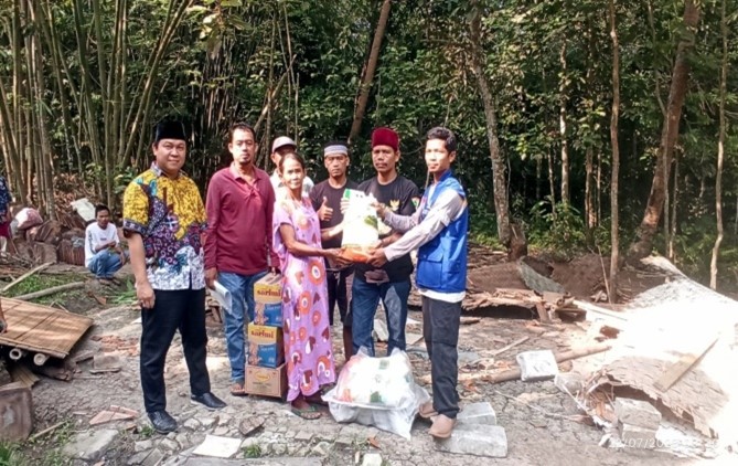 Pemberian bantuan korban bencana rumah roboh di Kecamatan Cikeusal | Dok. Istimewa