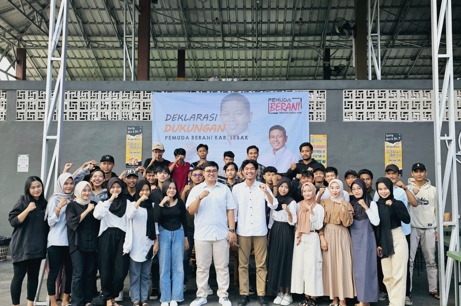 Hari ini, puluhan milenial mengatasnamakan Pemuda Barisan Andra Soni (Berani) Kabupaten Lebak menggelar deklarasi dukungan kepada Andra Soni untuk maju menjadi bakal calon Gubernur Banten pada Pilgub Banten 2024, di salah satu Kafe di Rangkasbitung, Kabupaten Lebak, pada Senin, 27 Mei 2024.