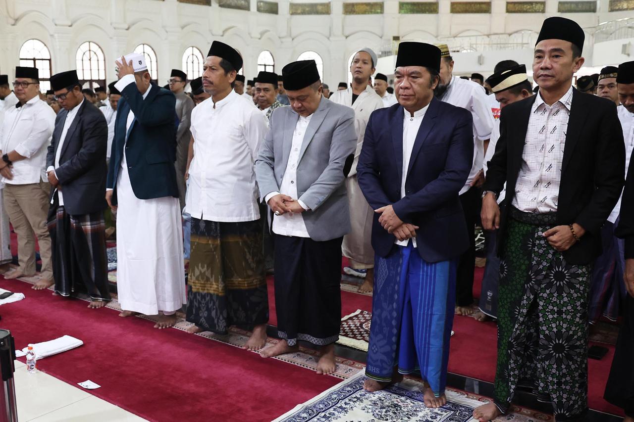 Tampak hadir para Kepala Organisasi Perangkat Daerah (OPD) dan ratusan warga masyarakat sekitar Kawasan Pusat Pemerintahan Provinsi Banten (KP3B) Kota Serang. Bertindak sebagai imam KH Syafari Basyar. Khotib oleh KH Ali Mujahidin Ketua Umum PB Al Khairiyah.