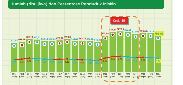 Jumlah penduduk miskin pada Maret 2024 sebesar 791,61 ribu orang, menurun 34,5 ribu orang terhadap Maret 2023. Persentase penduduk miskin perkotaan pada Maret 2023 sebesar 6,00 persen, turun menjadi 5,69 persen pada Maret 2024.