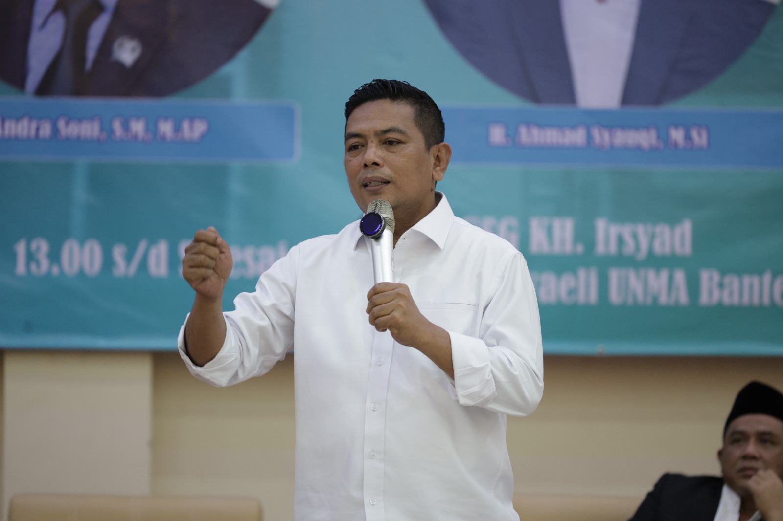 Hal itu disampaikan Andra Soni saat menjadi narasumber kegiatan uji gagasan dan visi calon pemimpin di Universitas Mathla’ul Anwar (UNMA), Saketi, Kabupaten Pandeglang, pada Rabu 17 Juli 2024.