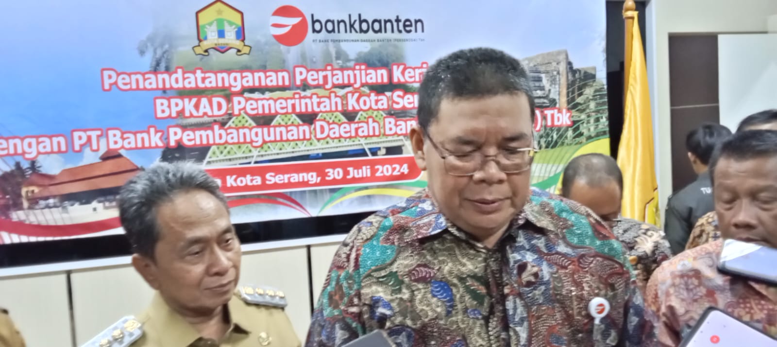 Penandatangan PKS tersebut di hadiri oleh Penjabat (Pj) Walikota Serang Yedi Rahmat, Direktur Utama Bank Banten Muhammad Busthami, Kepala Badan Pengelolaan Keuangan dan Aset Daerah (BPKAD) Kota Serang, Imam Rana Hardiana, yang dilakukan di Kantor Walikota Serang, Selasa, 30 Juli 2024.