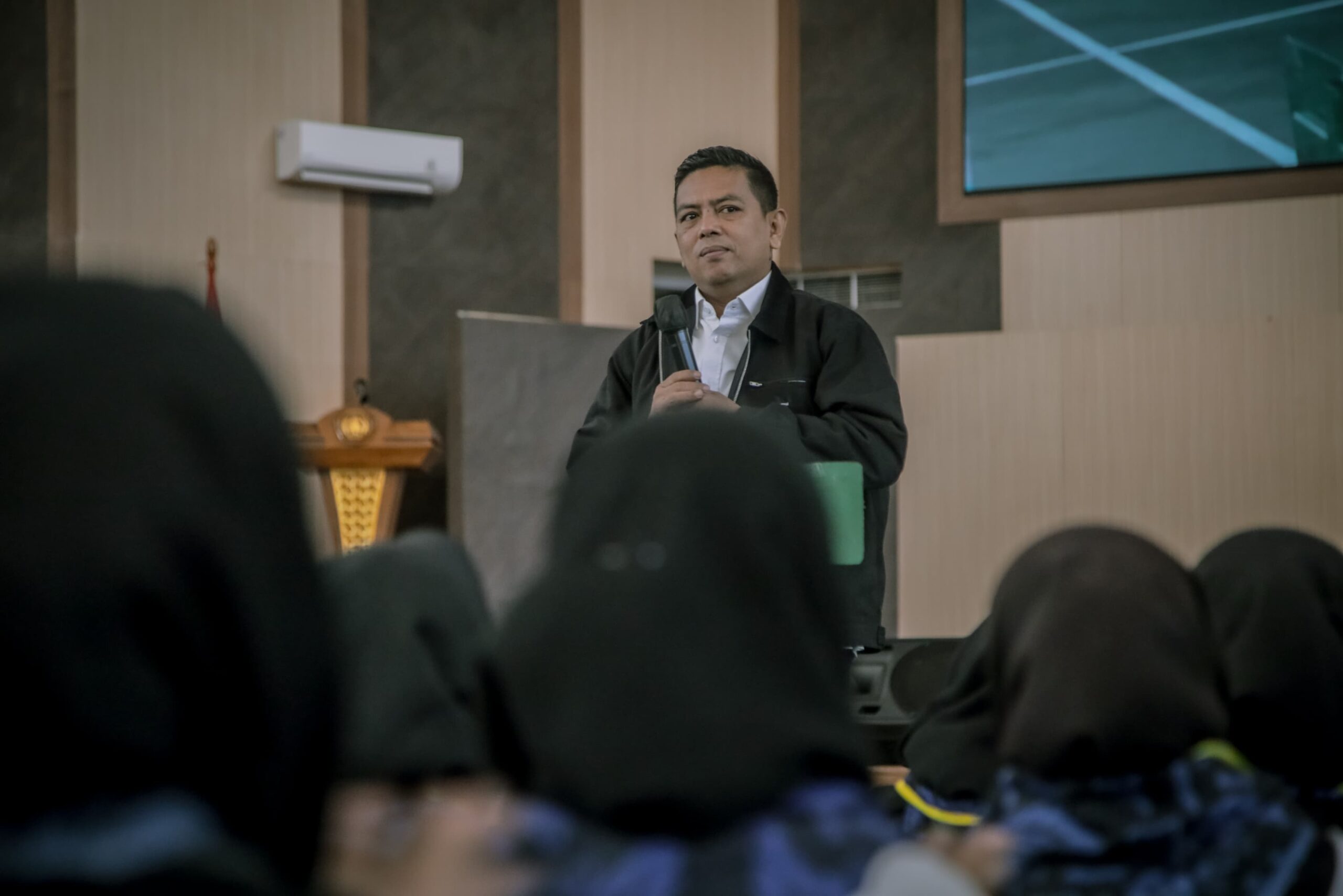 “Jangan pernah menunda tugas dan pegang prinsip ‘man jadda wa jadda,’ siapa yang bersungguh-sungguh, dia akan berhasil,” ujar Andra Soni, memberikan motivasi kepada para mahasiswa.