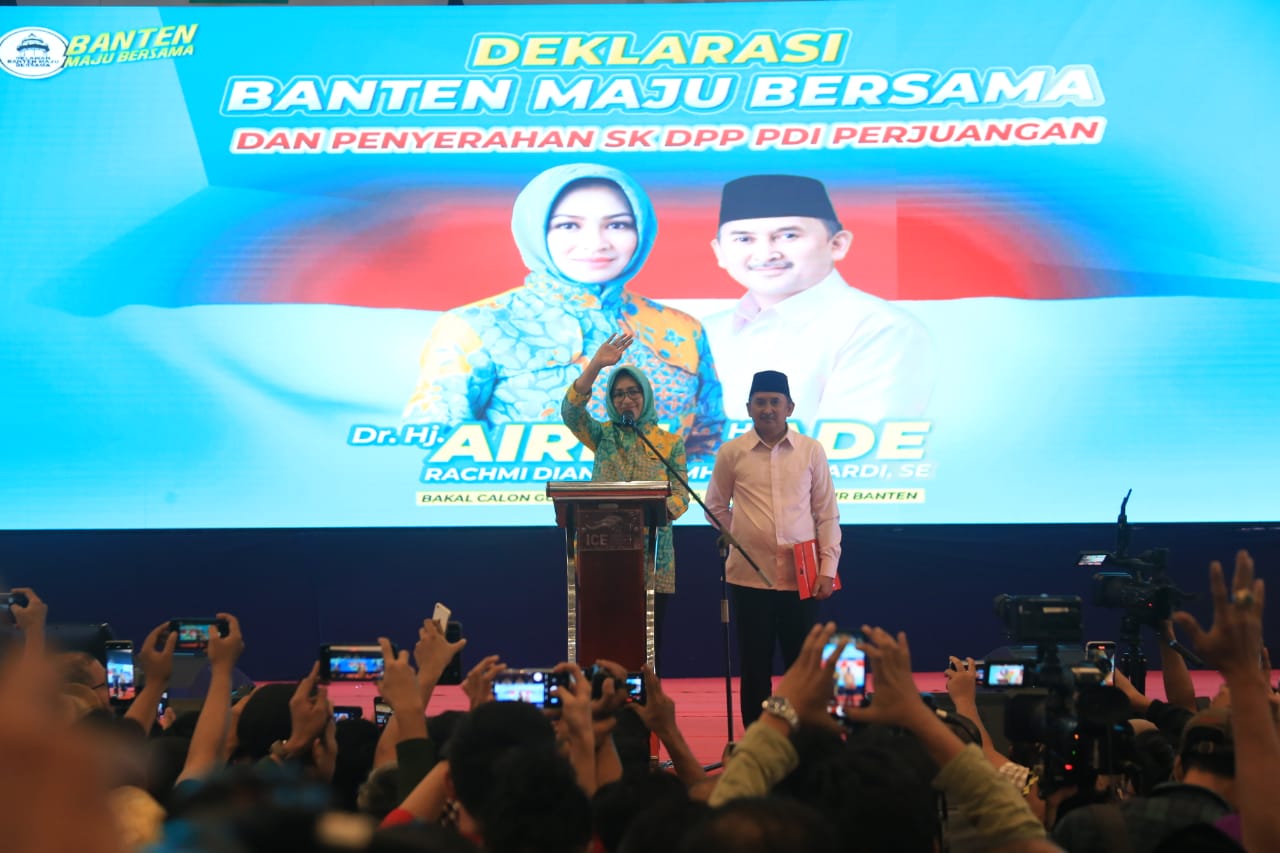 Tiket untuk Airin-Ade Sumardi maju di Pilgub Banten 2024 dipastikan melalui penyerahan formulir rekomendasi B1 Parpol KWK dalam acara Deklarasi Banten Maju Bersama, yang dihadiri mantan Gubernur Banten Rano Karno, Ketua DPD Golkar Provinsi Banten Ratu Tatu Chasanah dan petinggi DPP PDIP.