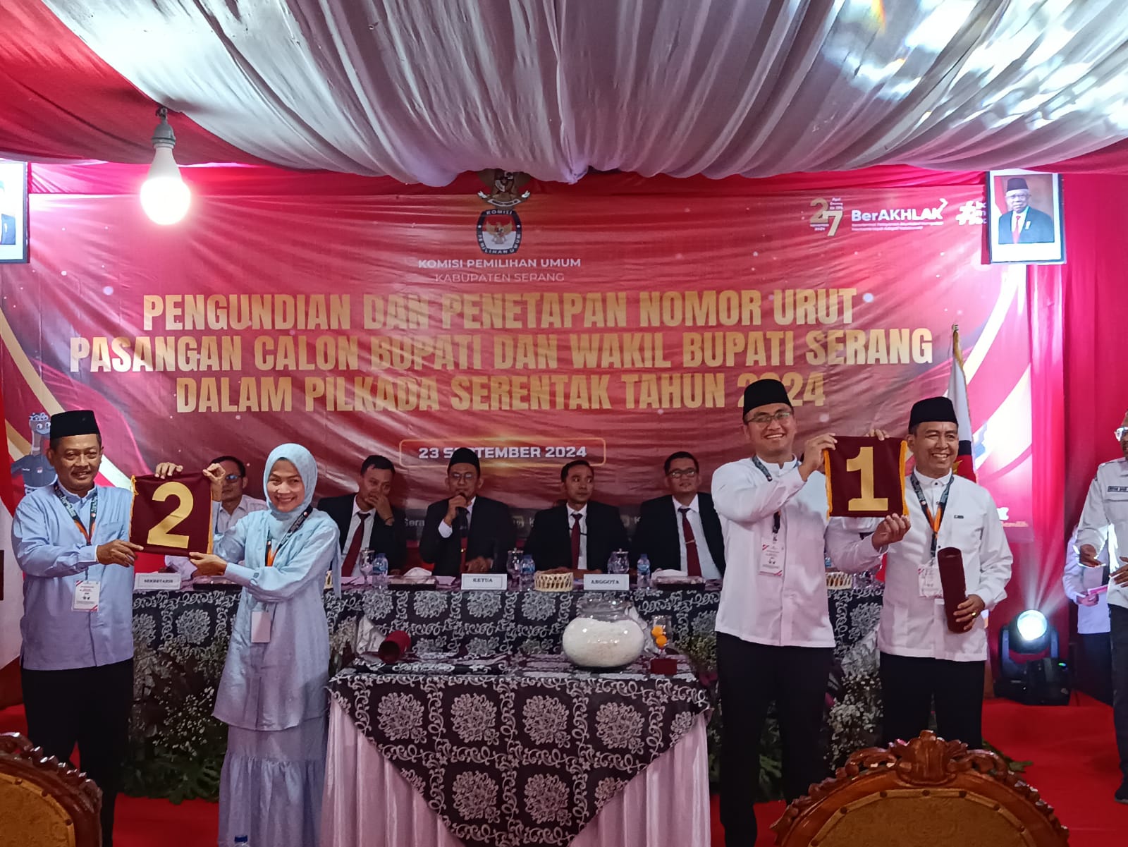 Saat dibuka paslon Bupati dan Wakil Bupati Serang Andika-Nanang mendapatkan nomor urut 1 dan paslon Zakiyah-Najib mendapatkan nomor urut 2 yang langsung disambut riuh oleh para pendukung.