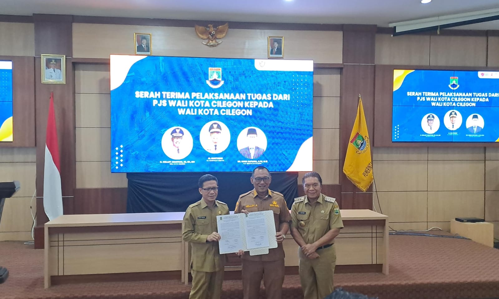 Hari ini, Pjs Walikota Cilegon Nana Supiana resmi menyerahkan tugas kepada Helldy Agustian sebagai walikota sekaligus calon walikota.