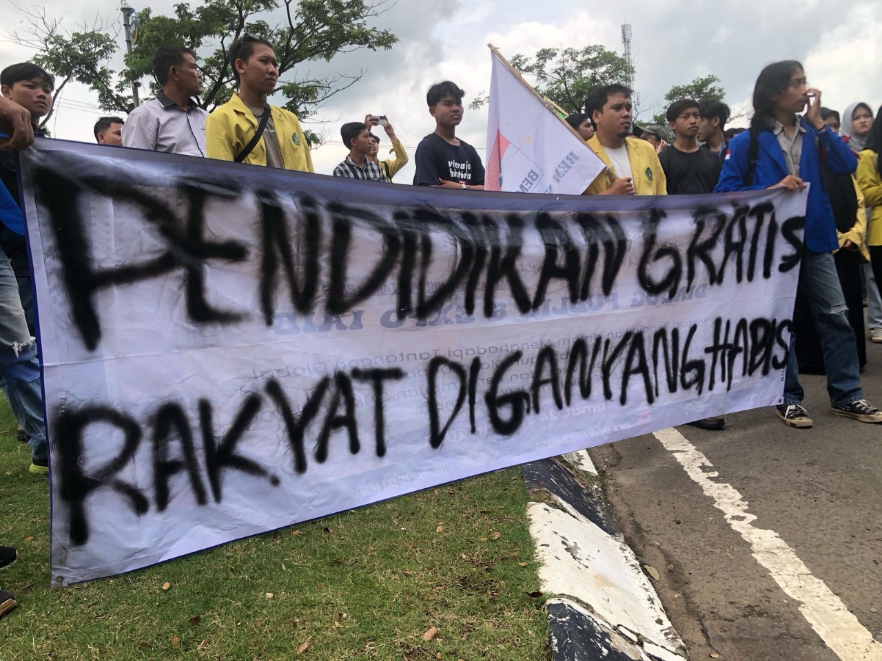 Mahasiswa juga mengingatkan pemerintah tentang janji kampanye gubernur terpilih mengenai sekolah gratis.