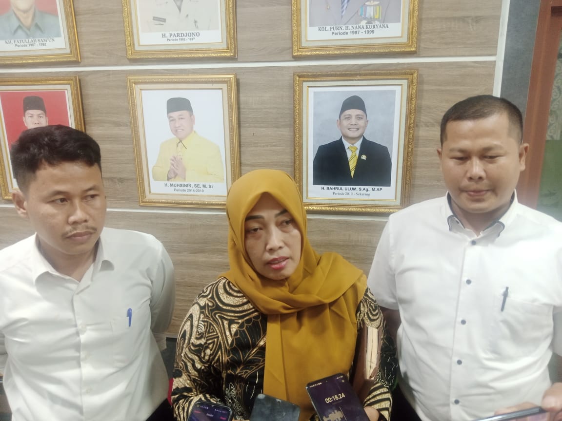 Dewan Pembina Forum Guru Honorer Lulus Passing Grade Seluruh Indonesia (FGHNLPSI) Kabupaten Serang Heti Kustrianingsih saat diwawancarai wartawan usai audiensi di ruang rapat paripurna gedung DPRD Kabupaten Serang l Dok. Dwi MY-BNC