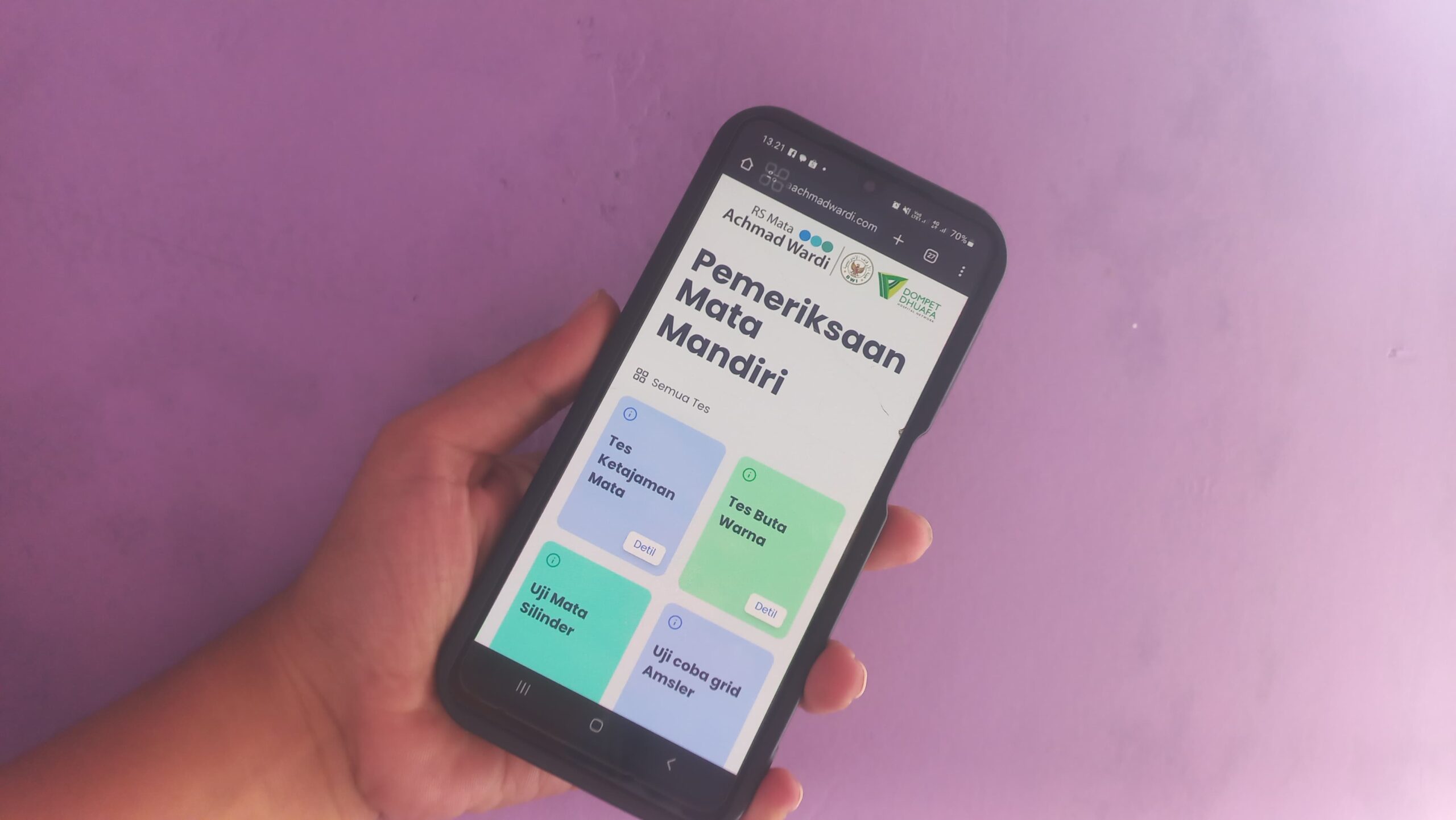 https://tesmata.rsmataachmadwardi.com kemudian pilih Test Mata Online, selanjutnya masyarakat dapat memulai pemeriksaan.