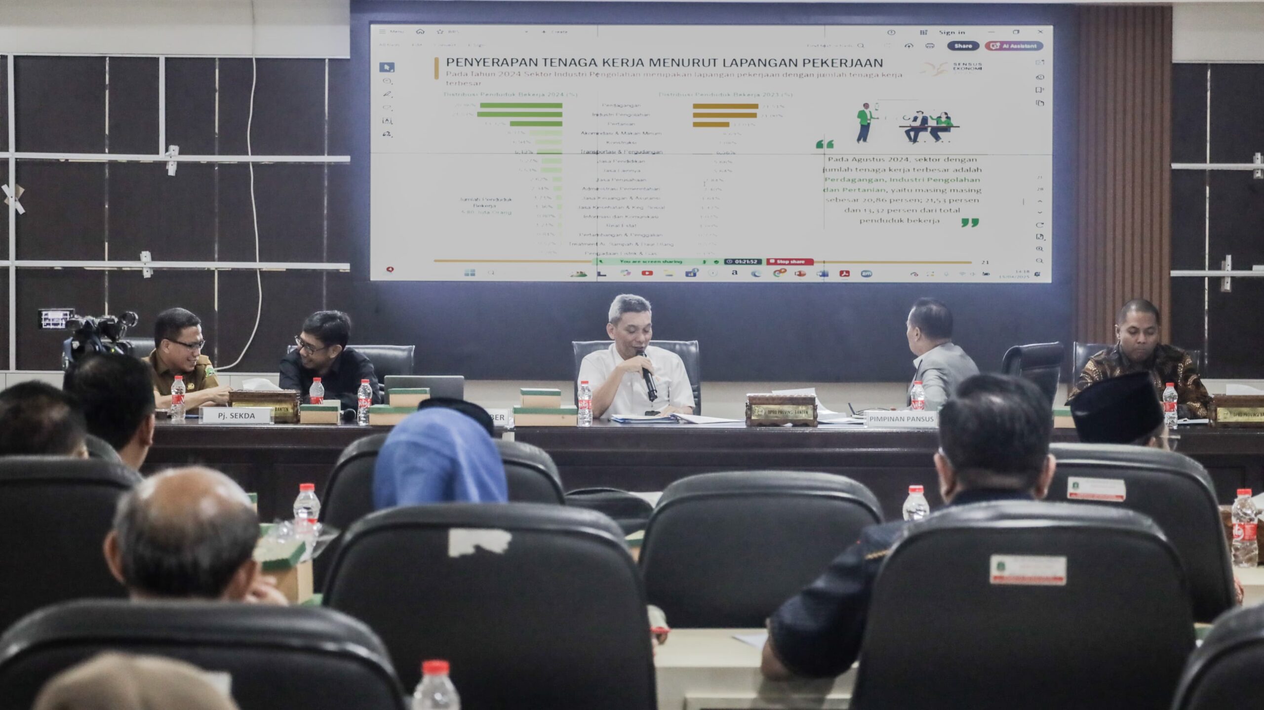 Rapat dengar pendapat yang membahas LKPj Pemerintah Provinsi Banten Tahun Anggaran 2024 tersebut dilaksanakan di GSG DPRD Provinsi Banten, Selasa, 15 April 2025.