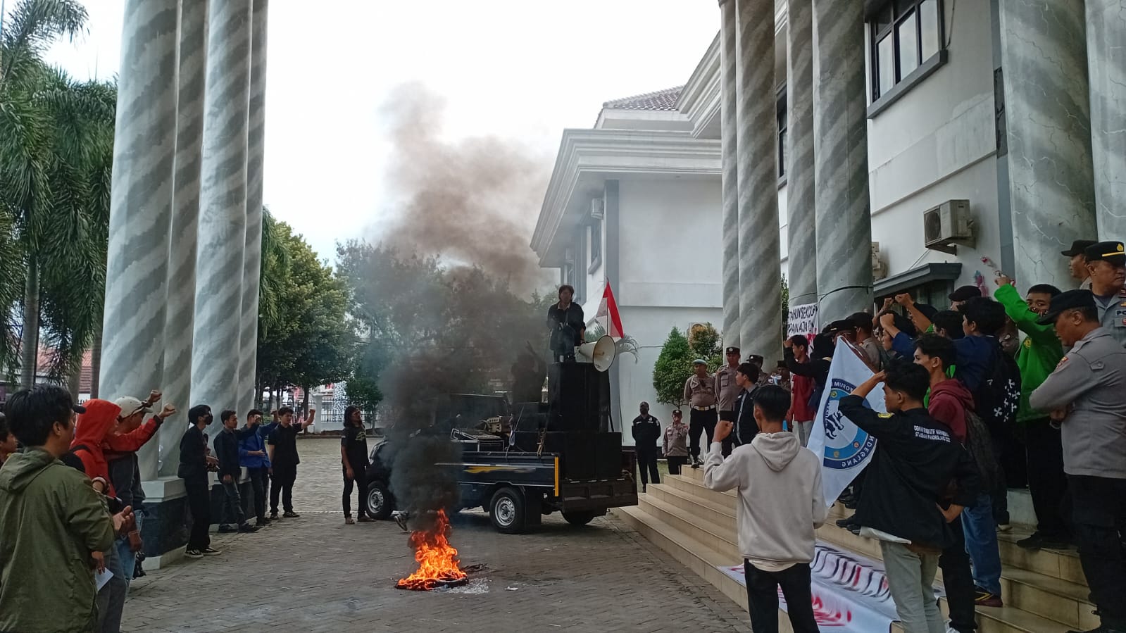 BagusNews.Co – Puluhan mahasiswa yang berasal dari berbagai Universitas di Pandeglang yang tergabung dalam Badan Ekskutif Mahasiswa (BEM) Pandeglang menggelar aksi di Kantor Sekretariat Daerah Kabupaten Pandeglang