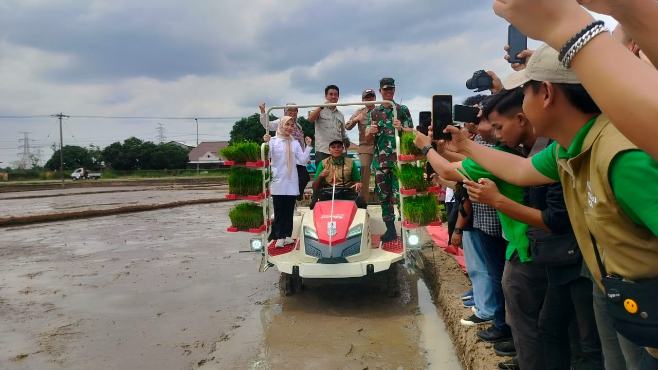 BagusNews.Co – Sebagai memperkuat ketahanan pangan di Kabupaten Serang, Bupati Serang Ratu Rachmatuzakiyah menghadiri gerakan tanam padi dan modernisasi pertanian yang digelar di Gapoktan Tunas Harapan, Desa Margasana, Kecamatan Kramatwatu.