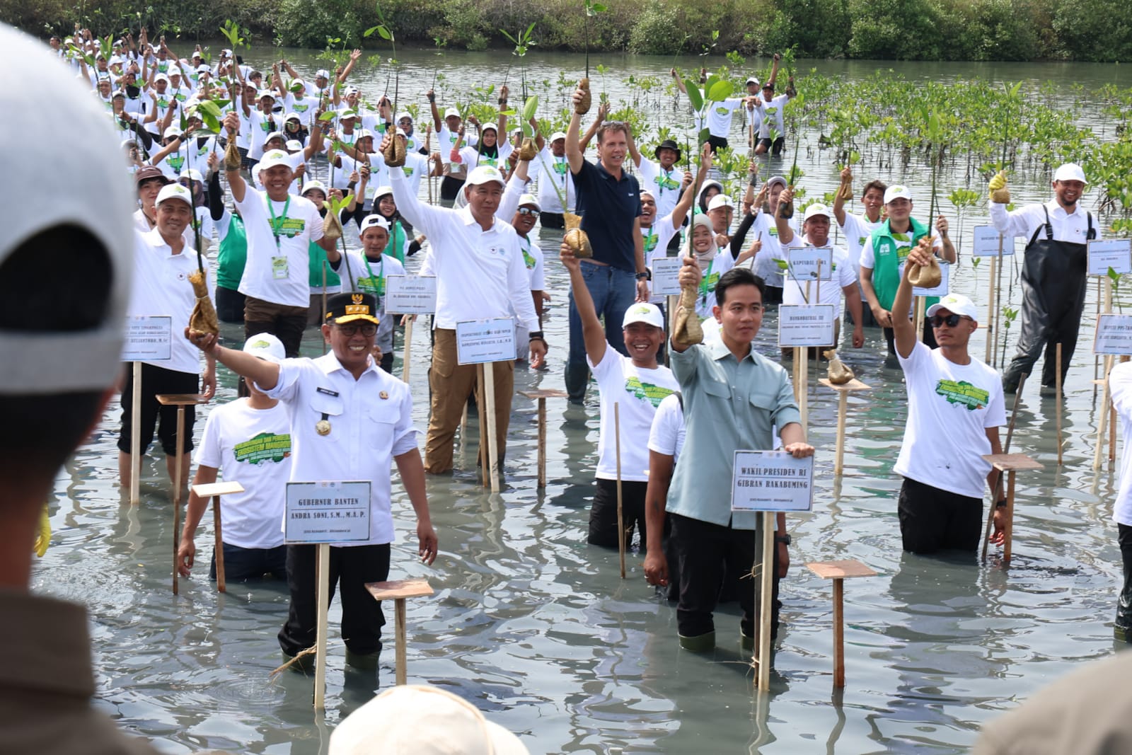 BagusNews.Co – Gubernur Banten Andra Soni mendampingi Wakil Presiden (Wapres) Republik Indonesia Gibran Rakabuming Raka dalam kegiatan penanaman mangrove di kawasan Ketapang Urban Aquaculture, Desa Ketapang, Kecamatan Mauk, Kabupaten Tangerang, Senin, 27 Oktober 2025.