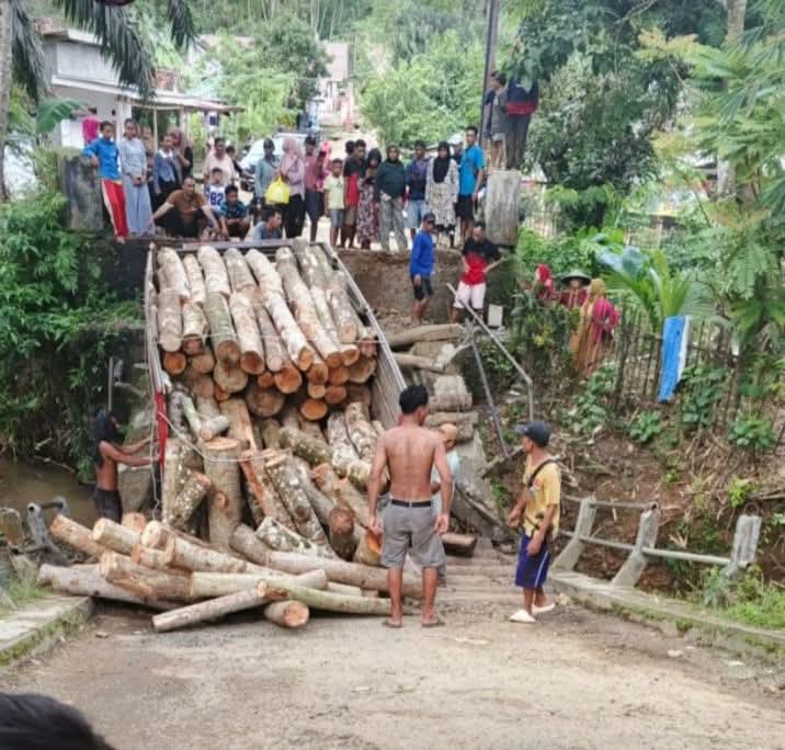 Berdasarkan informasi yang diperoleh, insiden tersebut terjadi pada Minggu sore, 7 Desember 2025 sekira pukul 15.00 WIB saat sebuah truk pengangkut kayu melintas di atasnya.