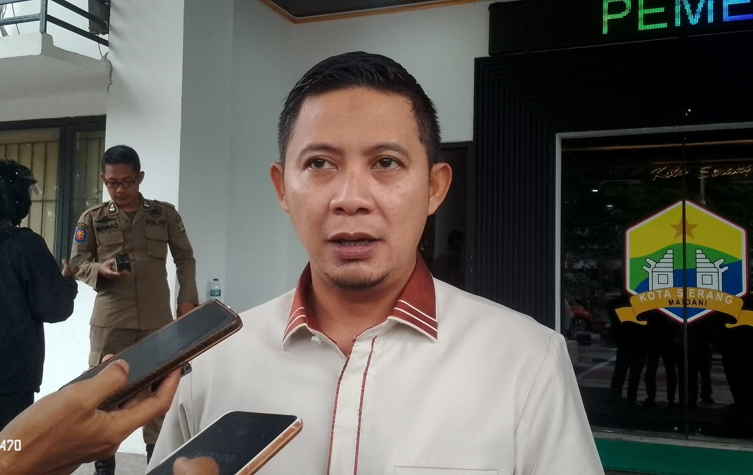 Ketua Satgas Percepatan Pembangunan dan Investasi Kota Serang, Wahyu Nurjamil, saat diwawancarai awak media I Dok. Roy-BNC