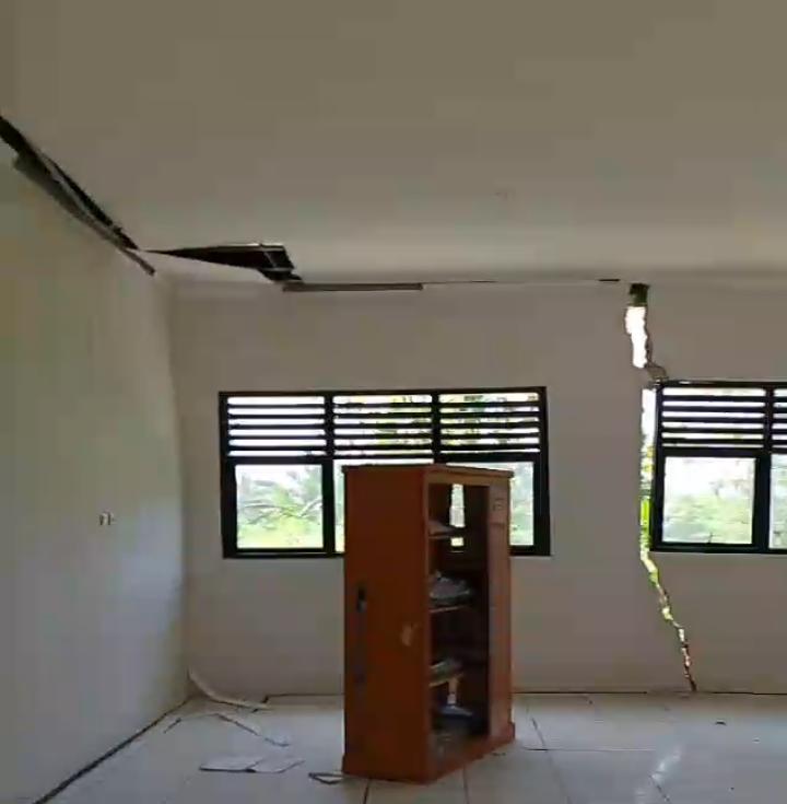 Tak hanya itu, retakan sudah merayap ke bangunan lain. Jika dibiarkan, kerusakan bisa meluas. “Semua gedung di sini retak. Bisa pengaruh dua bangunan lagi,” tambahnya.