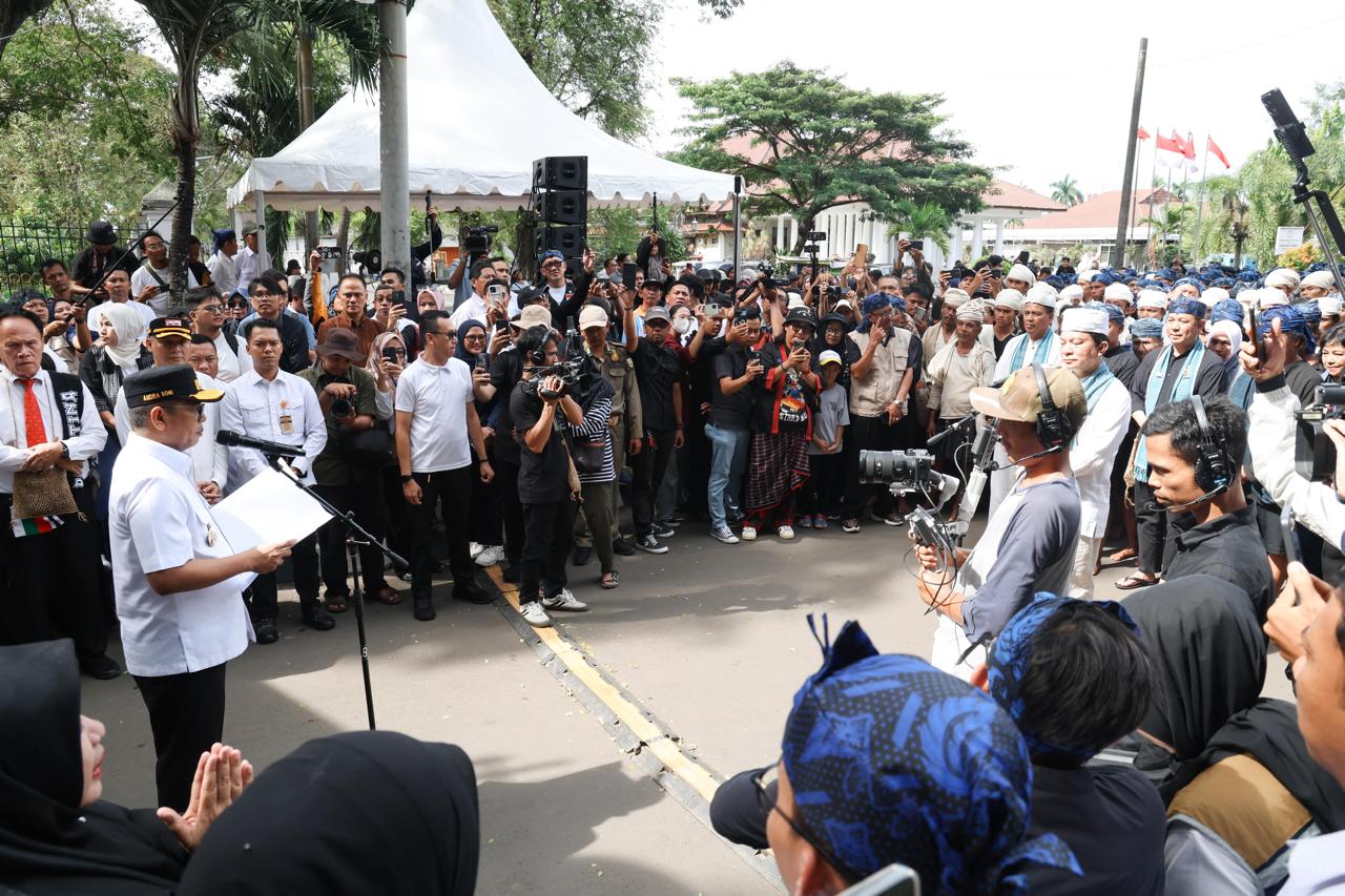“Kami menerima saudara-saudara kita dari Desa Adat Kanekes sebanyak 1.552 orang, terdiri dari masyarakat Baduy Dalam dan Baduy Luar dalam prosesi muka panto,” ujar Andra Soni.